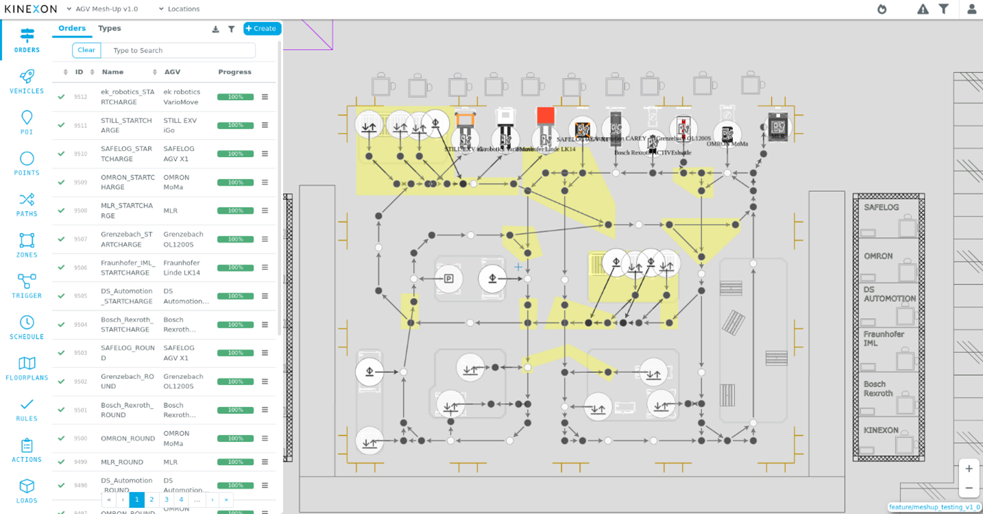 Integrate a diverse fleet of market-leading AMRs and AGVs from different manufacturers with the vendor-agnostic KINEXON Fleet Manager software